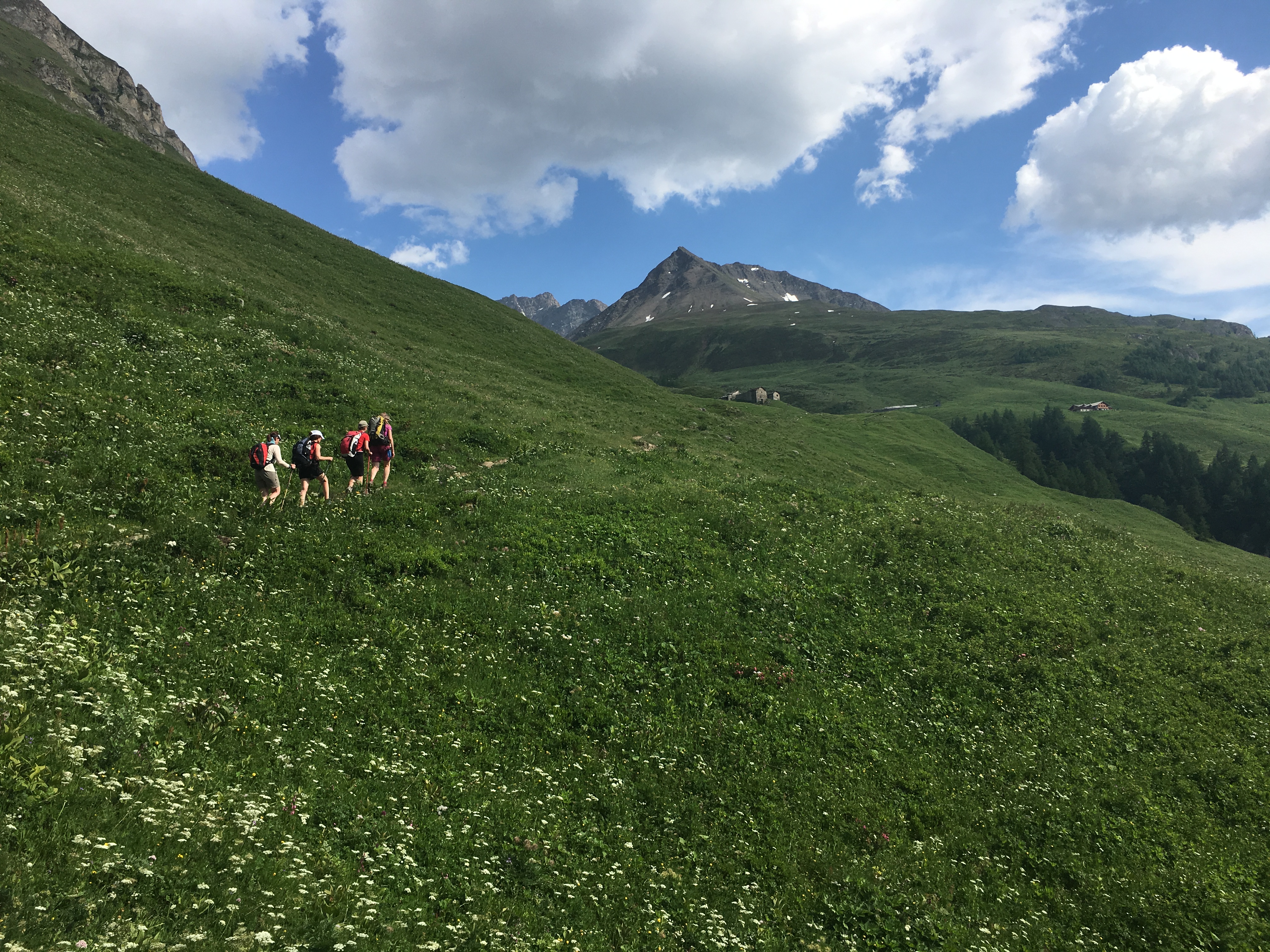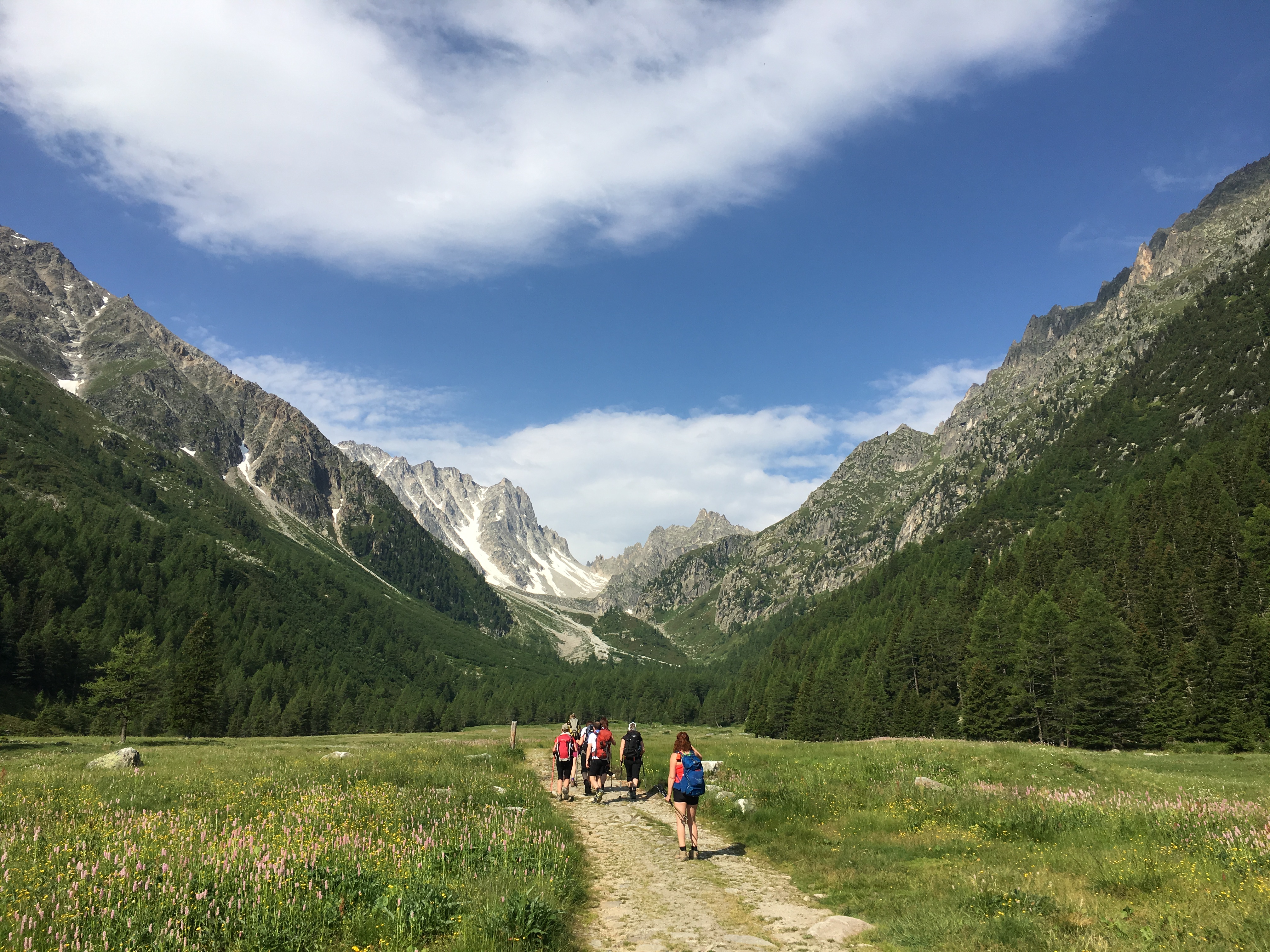 Dagurinn hefst með göngu upp í Seigne skarðið sem skilur að Frakkland og Ítalíu. Leiðin upp í skarðið er um krákustíga og hreint ekki eins erfið og hún virðist vera þegar horft er upp í skarðið. Úr skarðinu er ótrúlegt útsýni yfir Veny dalinn framundan og suðaustur hlið Mont Blanc og þá tilkomumiklu tinda sem þar er að finna. Eftir að hafa drukkið þetta magnaða útsýni í okkur höldum við niður dalinn og getum stoppað í skálanum Elisabetta til þess að fá okkur hádegismat. Frá Elisabetta skálanum er uþb klukkustundar gangur niður að La Viseille þar sem við tökum strætó niður til Courmayeur, sem að sönnu má kalla hina ítölsku háborg Alpanna. Við getum tekið snúning í borginni áður en við tökum næsta strætó inn Ferret dalinn og göngum síðan upp í Bonatti skálann þar sem við gistum í nótt. Frá Bonatti er hægt að virða fyrir sér Mont Blanc, eða Monte Bianco eins og fjallið heitir upp á ítölskuna. Hálft fæði
