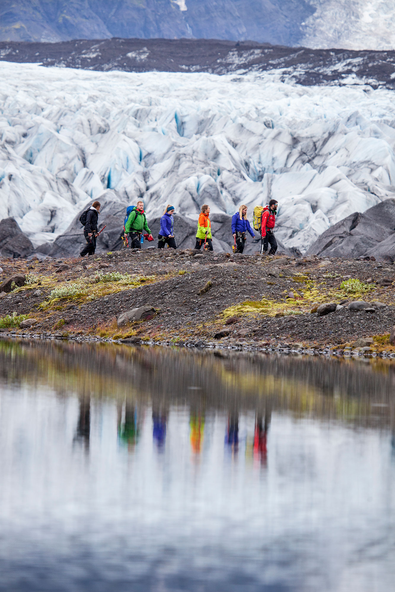 Allur tæknilegur búnaður, mannbroddar og ísexi, öryggisbelti og hjálmur, er innifalin í ferðinni og fyrri reynsla af jöklagöngum er ekki nauðsynleg.