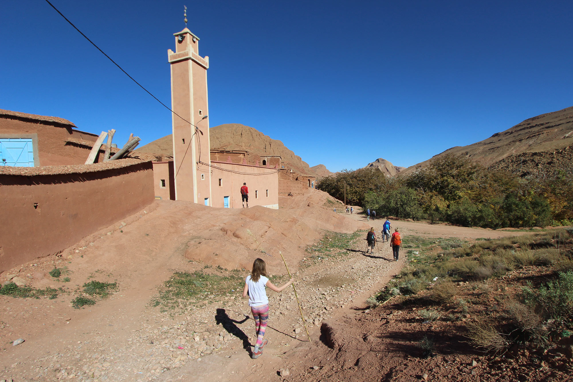 Eftir morgunverð höldum við til Ait Ouazzik virkisins, eða kasbah eins og það heitir á máli innfæddra og skoðum það áður en við leggjum af stað í göngu dagsins. Ólíkt því sem við gætum hafa haldið er ekki bara sandur í eyðimörkinni og leiðin okkar í dag liggur í gegnum gljúfur að brunninum IMI n´Ouarg þar sem við snæðum hádegisverðinn okkar. Við höldum svo áfram upp á við að sléttu sem gæti sem best verið á tunglinu miðað við landslagið, áður en við komum til þorpsins Amred, sem er sannkölluð vin í eyðimörkinni. Hérna setjum við upp tjaldbúðirnar okkar. Gist í tveggja manna tjaldi. Morgunverður, hádegisverður og kvöldverður. Ganga 4 – 5 klst