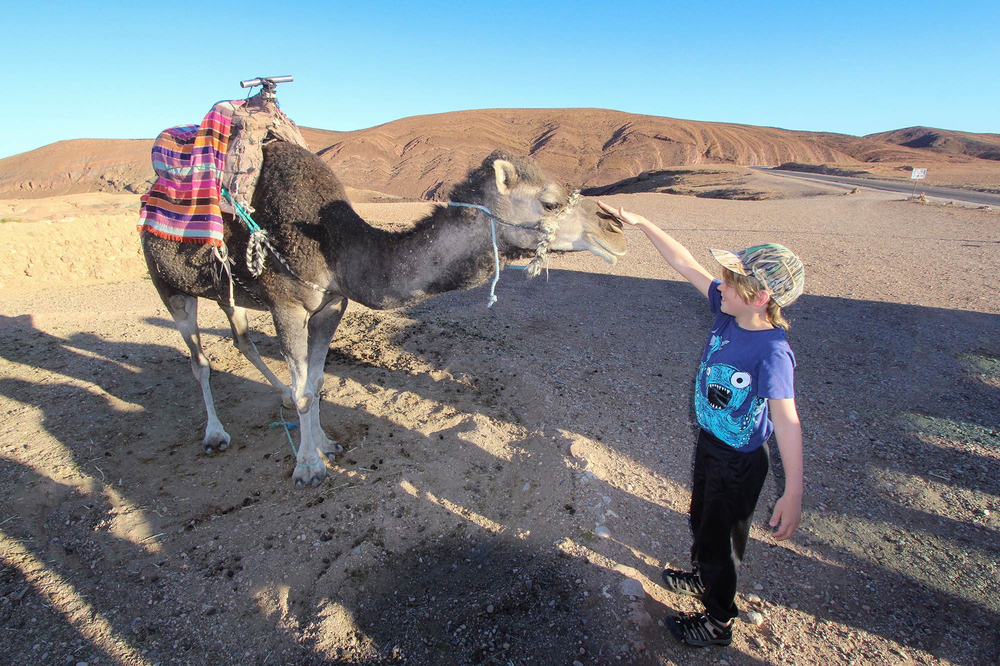 Í dag hefst svo ævintýrið okkar og eftir morgunverð höldum við af stað að eyðimörkinni, sjálfri Sahara. Fyrsti hluti leiðar okkar liggur um Haouz sléttuna en svo hlykkjast vegurinn upp í fjöllin, alla leið upp í skarðið Tizi n´Tichka sem er í 2260 metra hæð og það hæsta í Marokkó. Handan fjallgarðsins lækkum við niður til borgarinnar Ouarzazate og hægt er að velta fyrir sér hvernig þetta skrýtna orð er borið fram en við snæðum hádegisverð í borginni. Í eftirmiðdaginn höldum við svo áfram ferð okkar og ökum í gegnum Draa dalinn þar sem einstæðar klettamyndanir sem trúlega ekkert okkar hefur áður séð kalla á stopp. Deginum lýkur svo við jaðar eyðimerkurinnar í Tamsahlte þar sem við gistum í tjaldbúðum. Þar gefst okkur færi á að kynnast úlföldunum og hirðum þeirra en þessi forvitnilegu dýr verða með okkur næstu daga. Gist í tveggja manna tjaldi. Morgunverður, hádegisverður og kvöldverður.