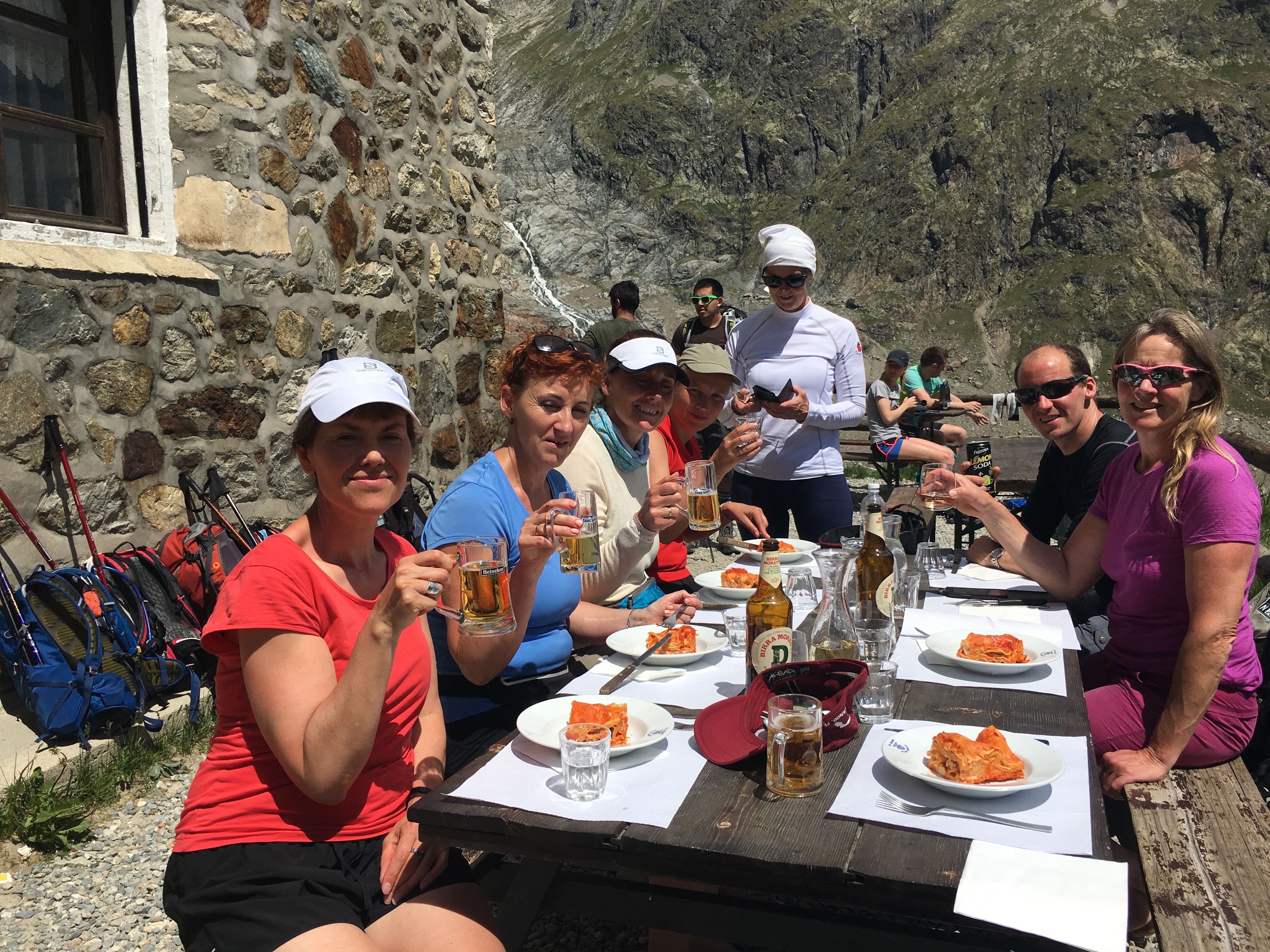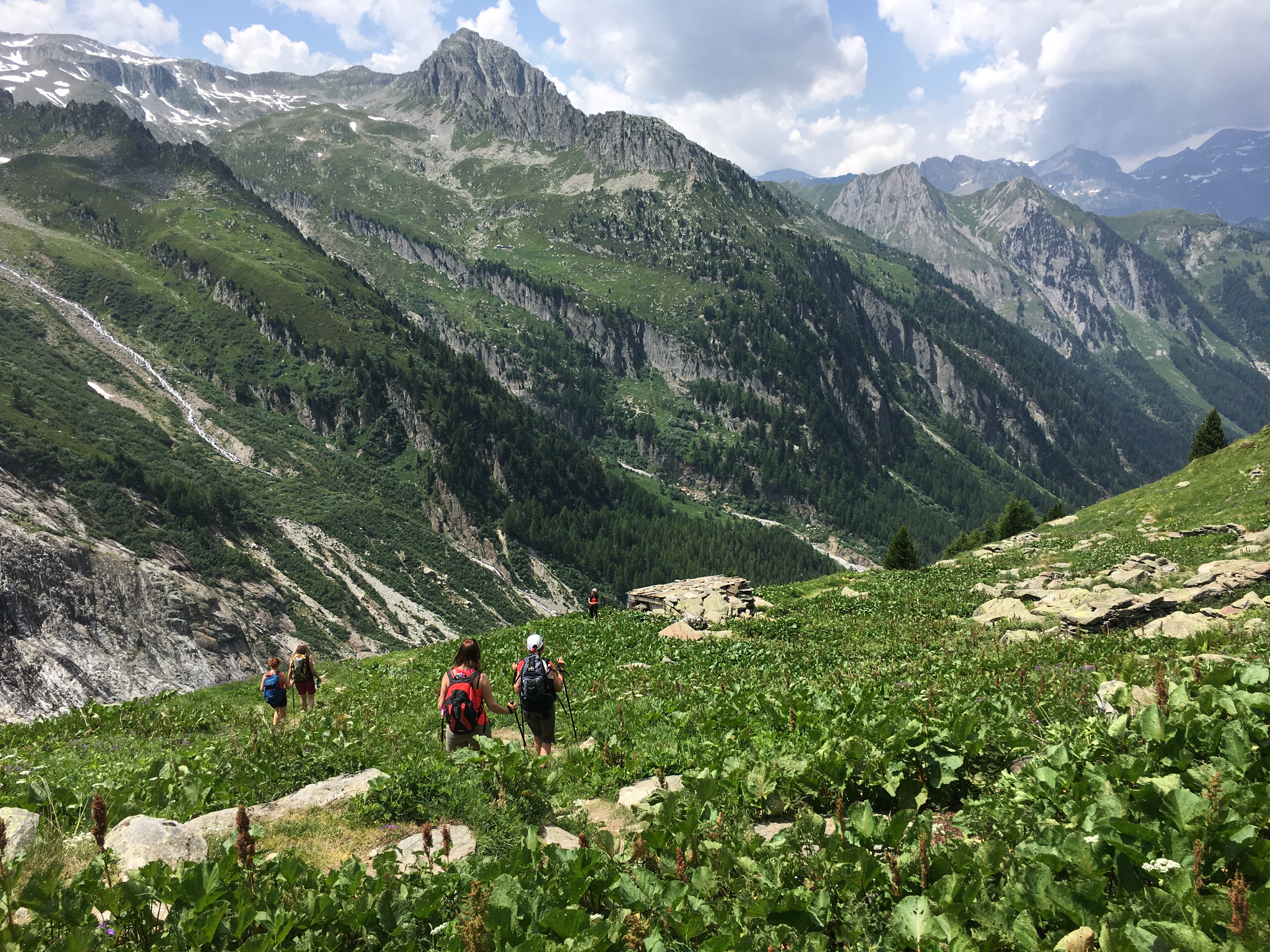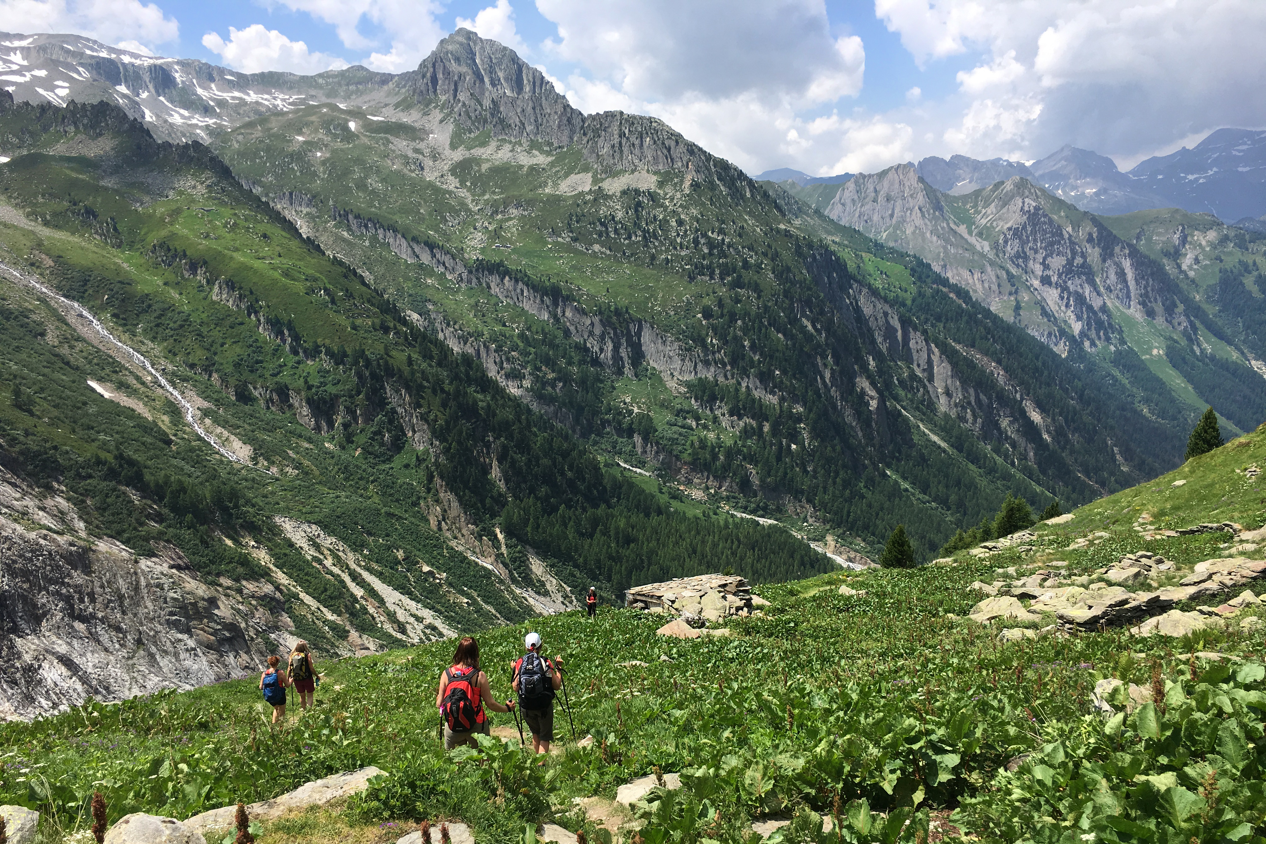 Dagurinn hefst með göngu upp í Seigne skarðið sem skilur að Frakkland og Ítalíu. Leiðin upp í skarðið er um krákustíga og hreint ekki eins erfið og hún virðist vera þegar horft er upp í skarðið. Úr skarðinu er ótrúlegt útsýni yfir Veny dalinn framundan og suðaustur hlið Mont Blanc og þá tilkomumiklu tinda sem þar er að finna. Eftir að hafa drukkið þetta magnaða útsýni í okkur höldum við niður dalinn og getum stoppað í skálanum Elisabetta til þess að fá okkur hádegismat. Frá Elisabetta skálanum er uþb klukkustundar gangur niður að La Viseille þar sem við tökum strætó niður til Courmayeur, sem að sönnu má kalla hina ítölsku háborg Alpanna. Við getum tekið snúning í borginni áður en við tökum næsta strætó inn Ferret dalinn og göngum síðan upp í Bonatti skálann þar sem við gistum í nótt. Frá Bonatti er hægt að virða fyrir sér Mont Blanc, eða Monte Bianco eins og fjallið heitir upp á ítölskuna. Hálft fæði