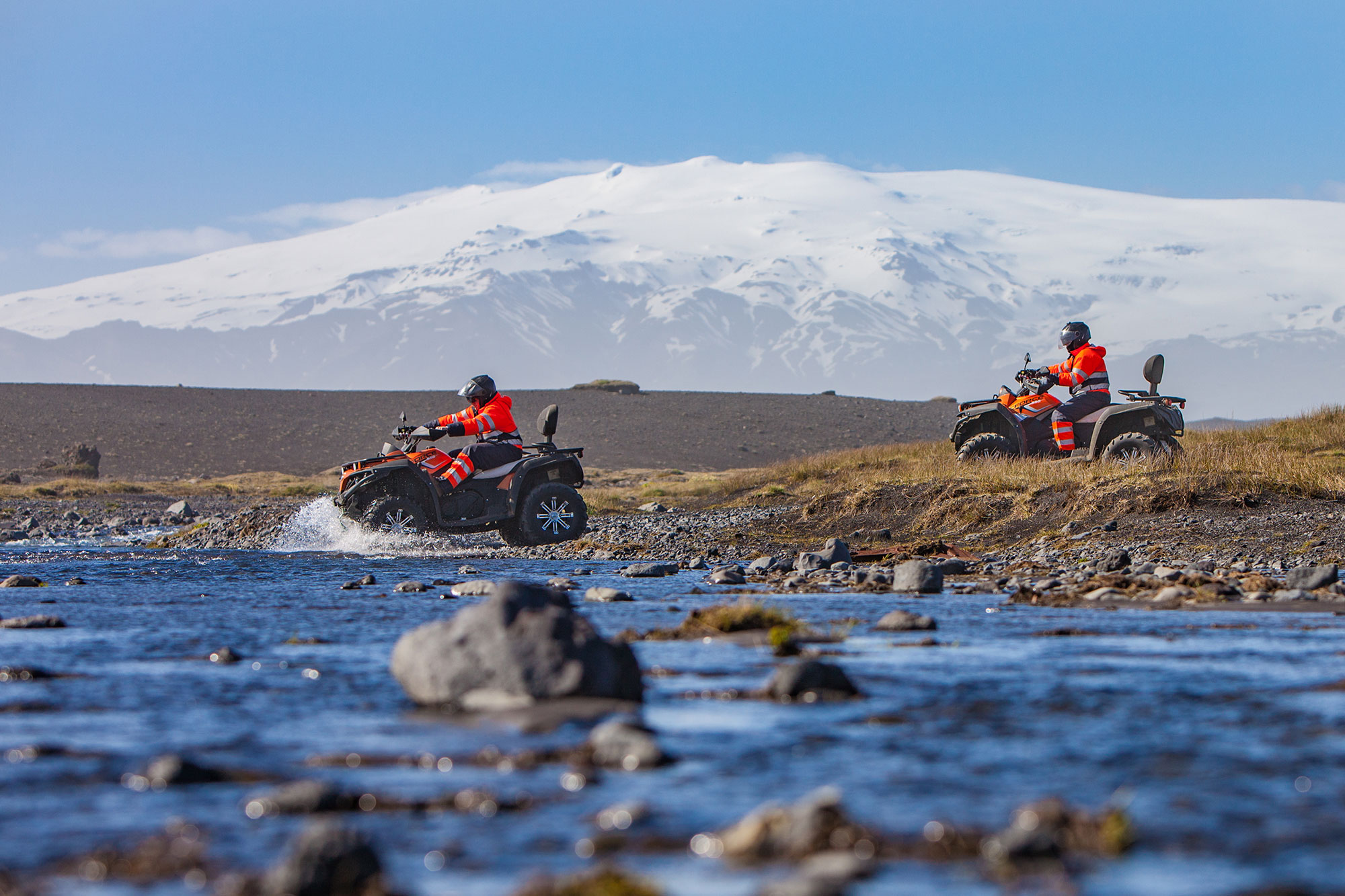 Tveggja sæta fjórhjól, leiðsögn fagmenntaðs leiðsögumanns, hlífðaralklæðnaður, hjálmur og lambhúshetta