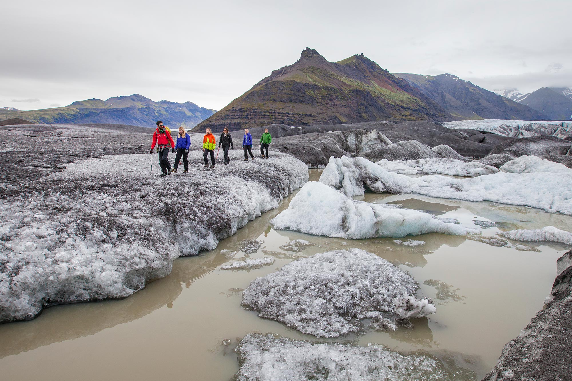 Í þessari auðveldu og fjölskylduvænu jöklagöngu er farið í stuttan leiðangur um skriðjökul í nágrenni Skaftafells. Vatnajökull, stærsti jökull í Evrópu, og skriðjöklarnir sem teygja sig niður jökuldali Vatnajökulsþjóðgarðs eru ótrúleg náttúruundur sem vert er að skoða. Viðurkenndur og reyndur jöklaleiðsögumaður tekur á móti þér í höfuðstöðvum okkar í Skaftafelli en þaðan er haldið að rótum skriðjökuls þar sem aðgengi er gott. Gengið er um framandi landslag þar sem djúpar sprungur, vatnssvelgir og aðrar jökulmyndanir eru skoðaðar á öruggan hátt. Á meðan jöklaleiðsögumaður okkar fræðir hópinn um nærumhverfið gefst nægur tími til að taka myndir og safna minningum.