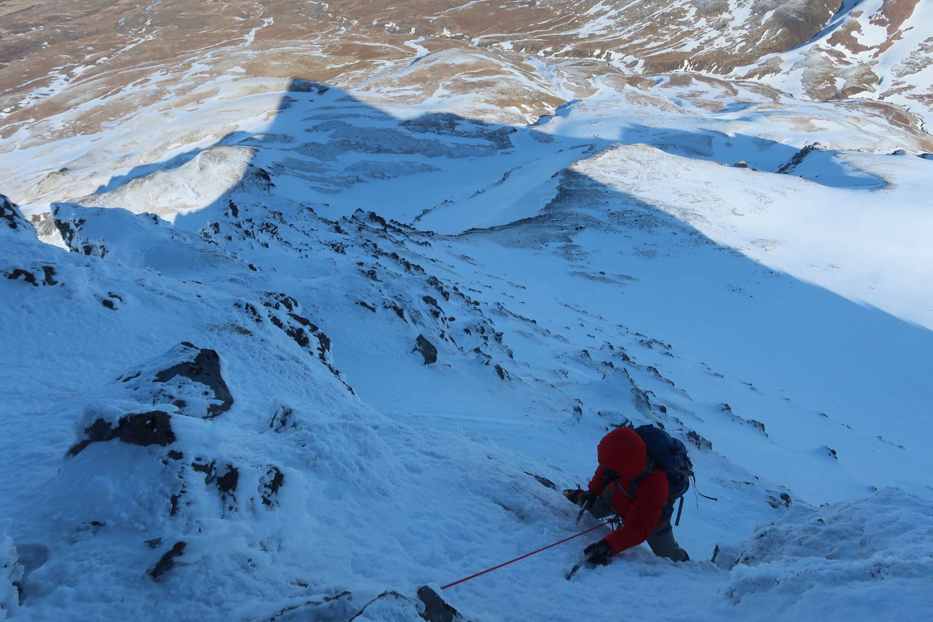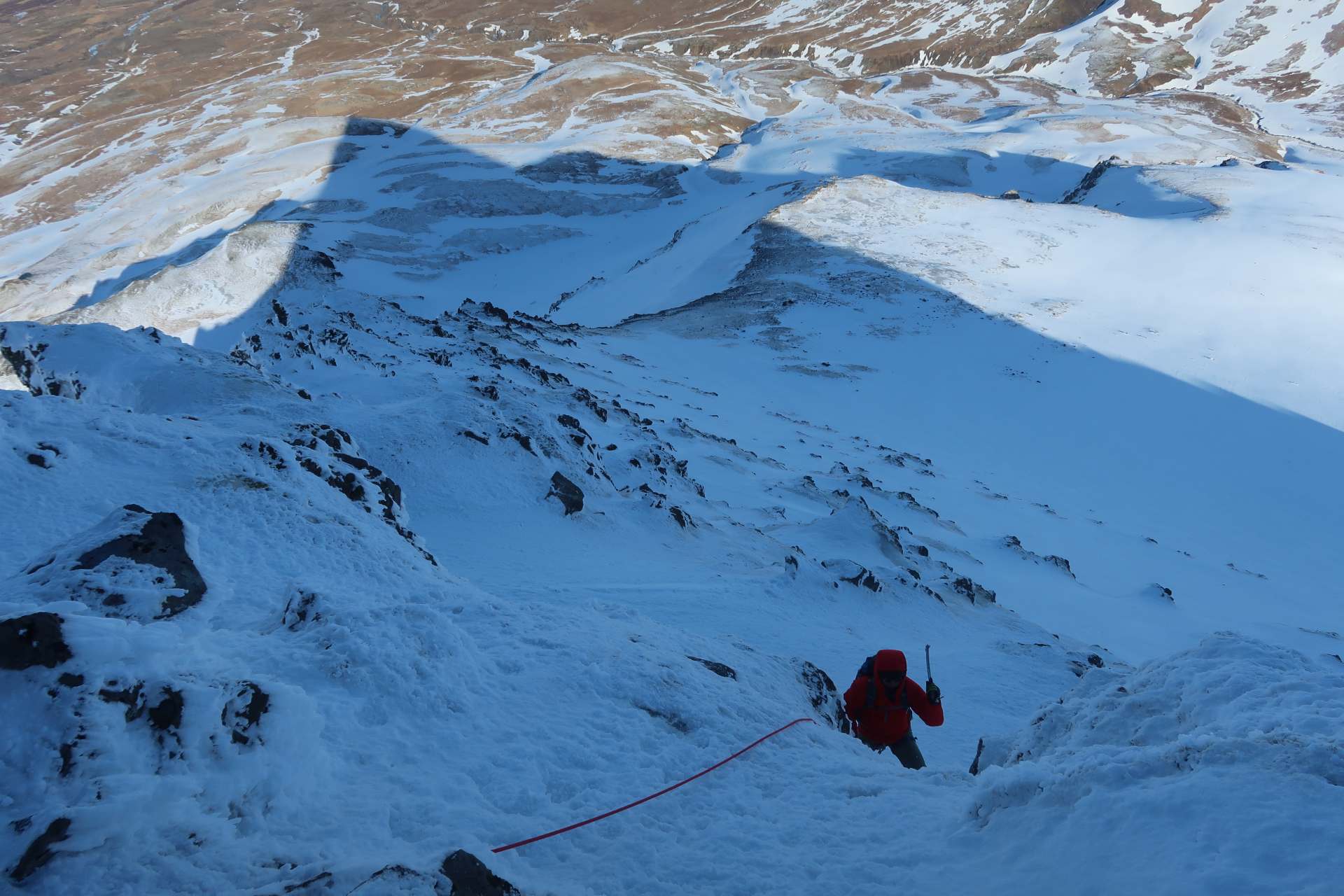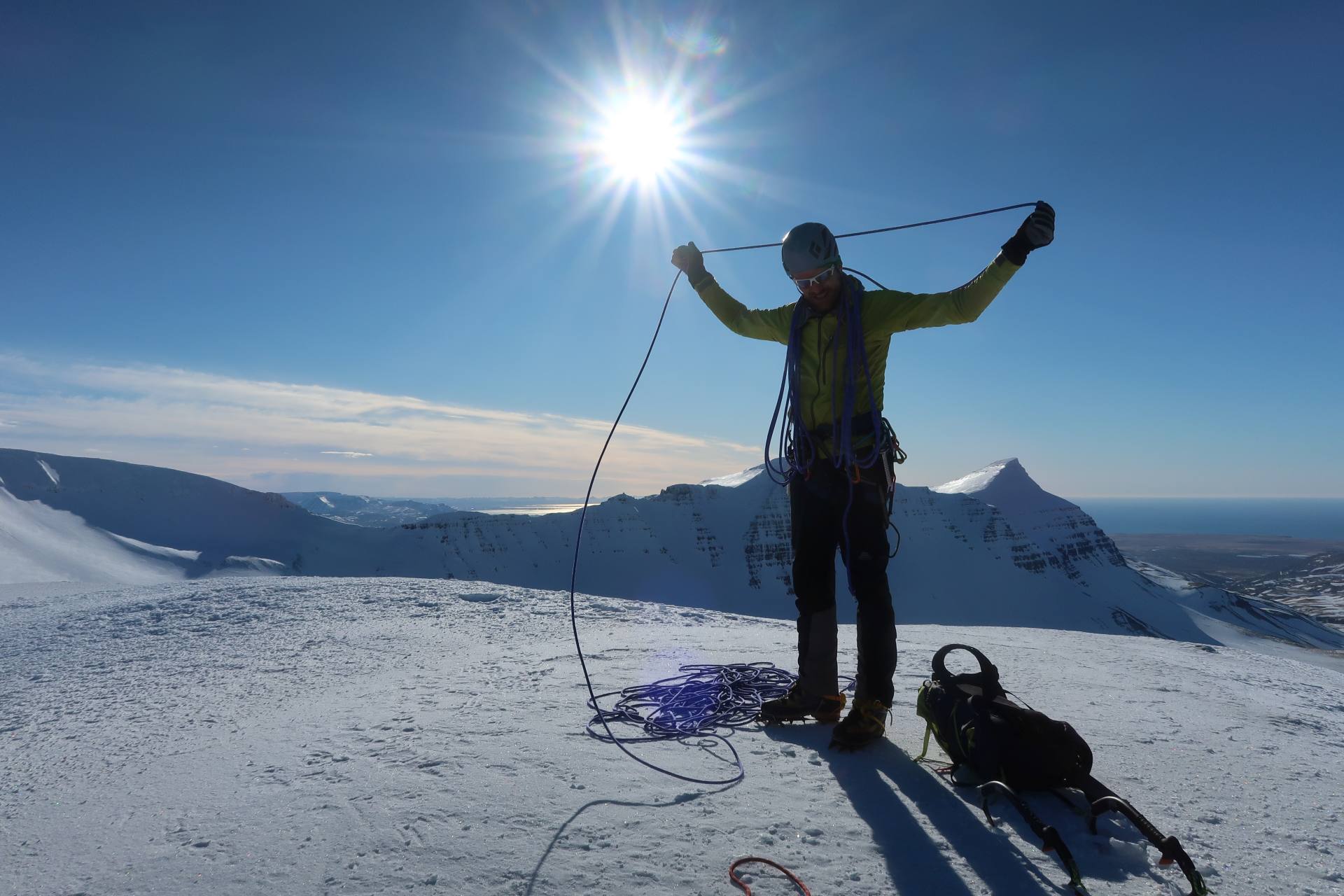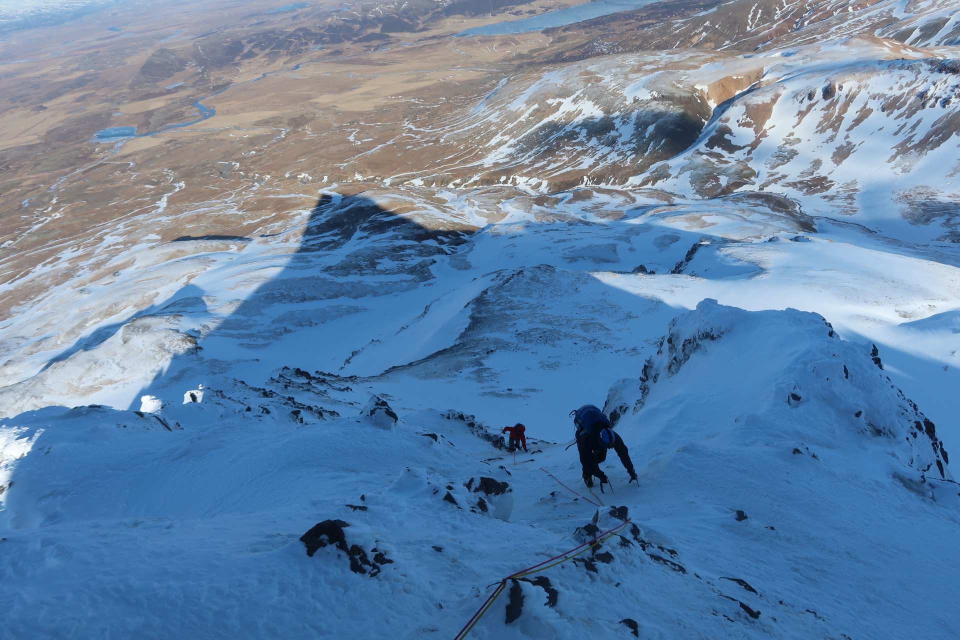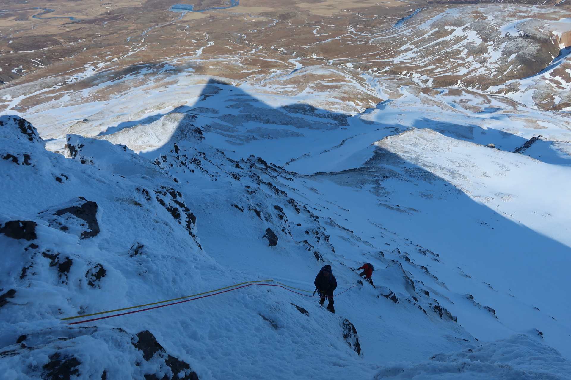 Klifur eftir klassískri alpaleið, norð-austurhrygg Skessuhorns. 450 metrar af klifri, klikkað útsýni og geggjaður tindur - getur ekki klikkað!