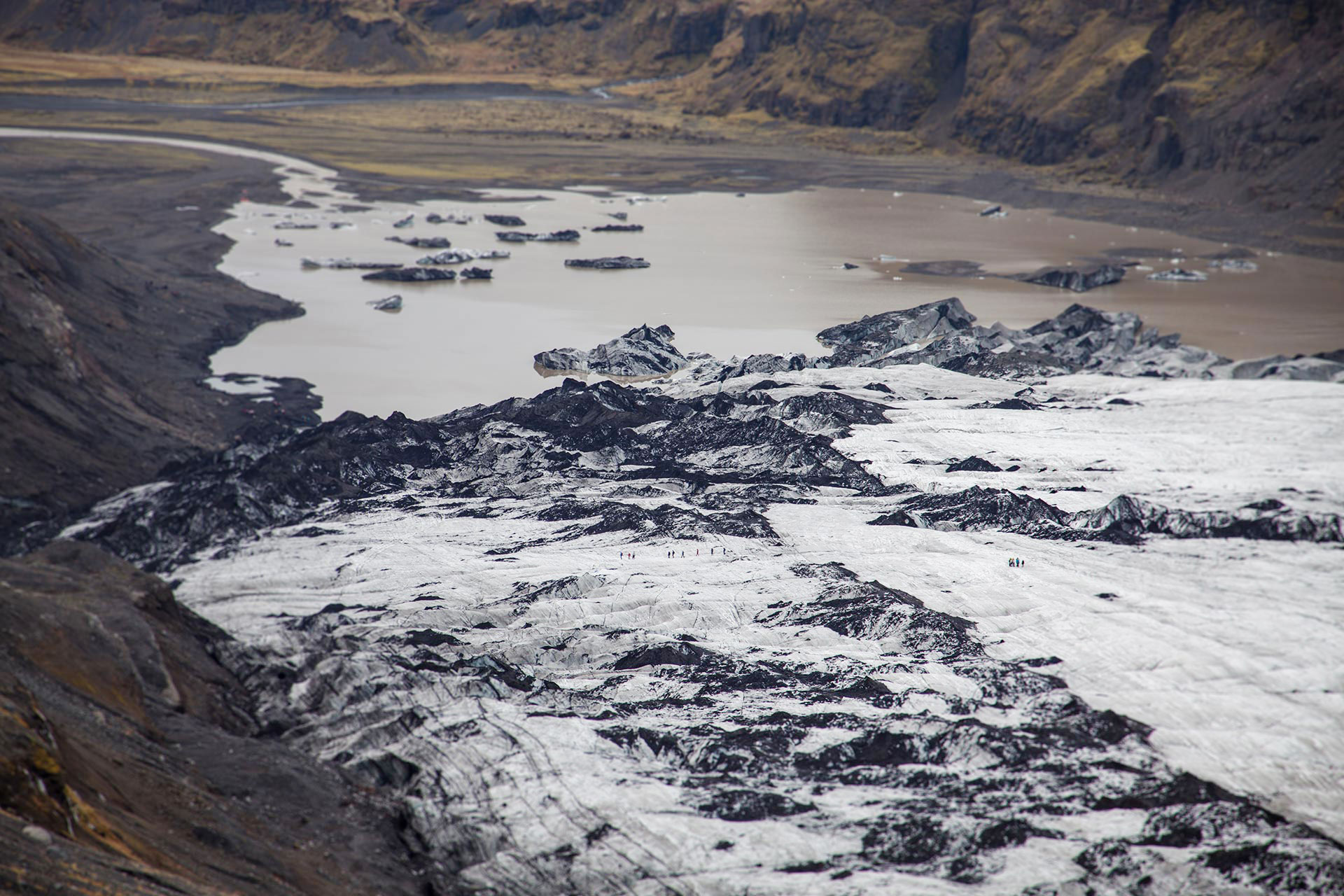 Við hittumst á bílastæðinu fyrir framan Sólheimajökul. Leiðsögumaður tekur á móti hópnum og ekur honum stutta vegalengd að höfuðstöðvum Arcanum undir Mýrdalsjökli. Þar er farið í stærri bíl sem keyrir hópinn upp í 750m metra hæð þar sem gangan hefst. Á göngunni sér maður bersýnilega hvernig jöklar landsins hafa mótað landslagið. Gangan er að mestu leiti niður í móti þar sem gamalli smalaleið er fylgt meðfram jökulrönd Sólheimajökuls. Á leiðinni njótum við útsýnisins yfir suðurlandsundirlendið, yfir jökullinn og fetum okkur í gegnum gil niður meðfram jökulröndinni. Ferðin endar á bílastæðinu við Sólheimajökul þar sem bílarnir bíða eigenda sinna.