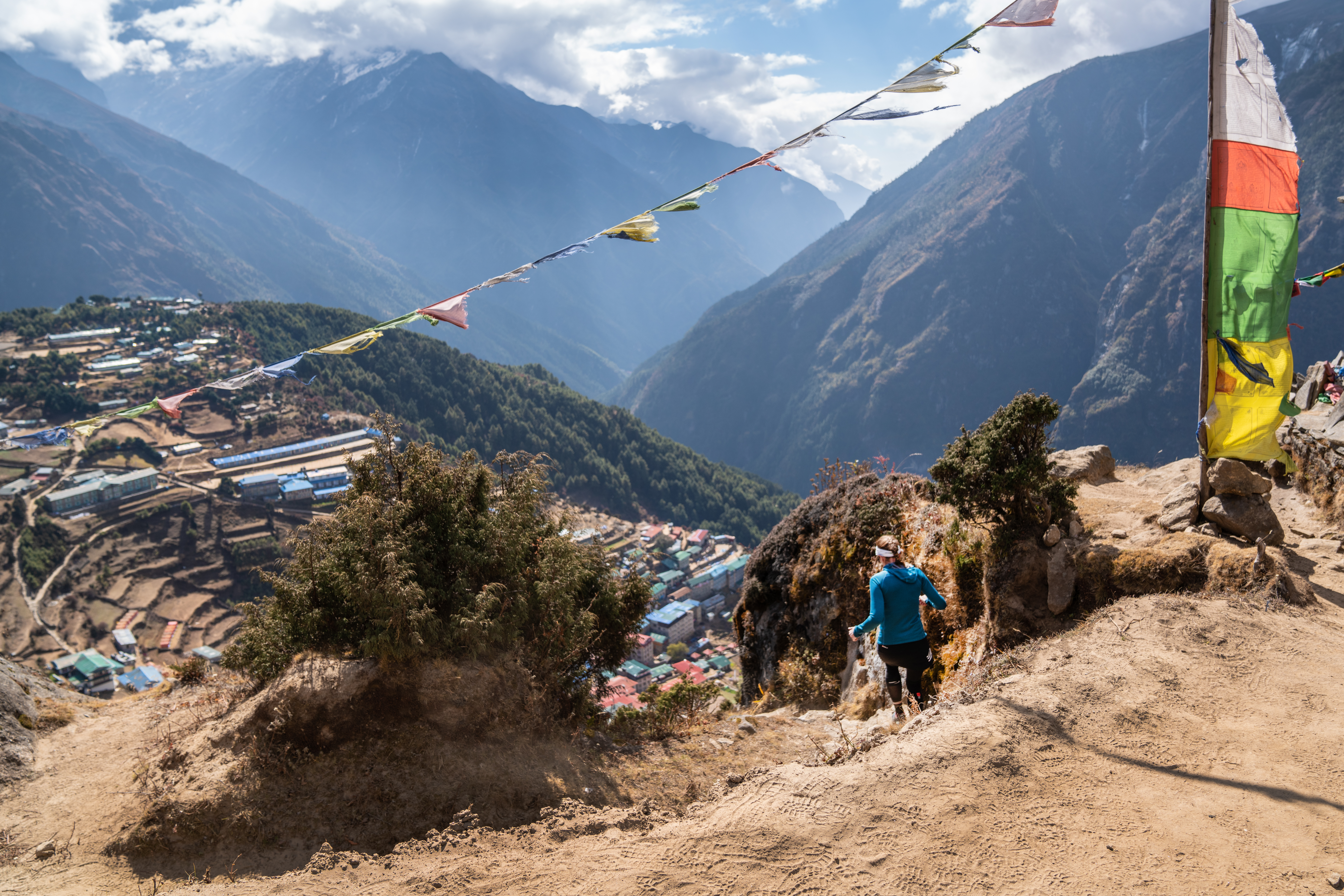 Dagur til þess að skoða þessa sjerpaborg nánar í fylgd leiðsögumannsins og fara í stutta göngu upp í 4.000 m hæð þar sem við sjáum Everst í fyrsta skipti í ferðinni. Á bakaleiðinni tökum við létt skokk niður i móti. Gist á gistihúsi, fullt fæði