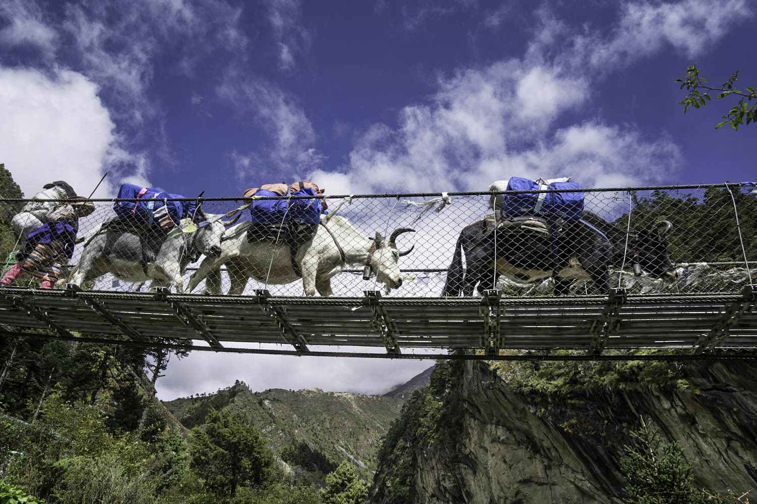 Í dag liggur leiðin upp á við til höfuðborgar sjerpanna og flestir eiga sín fyrstu kynni af hengibrúm á leiðinni þegar farið er yfir ána Dudh Kosi (Mjólká). 5-6 tíma ganga, ca 15 km. Gist á gistihúsi, fullt fæði